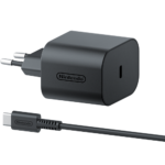 Genoplad din Nintendo Switch 2-spilkonsol med denne AC-strømadapter, selv når du er væk hjemmefra og ikke har adgang til din Switch-dockingstation. Strømadapteren tilsluttes konsollen via USB Type-C-opladningsporten.