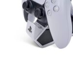 Oplad og fremvis dine DualSense trådløse controllere med den officielt licenserede Twin Charging Station til PlayStation 5. Det er nemt at oplade to controllere på én gang. Når du er opladet, skal du klikke ned for at frigive kontakten og starte dit spil. Eller bare lad controlleren stå på stationen for en fantastisk iøjnefaldende dispaly.